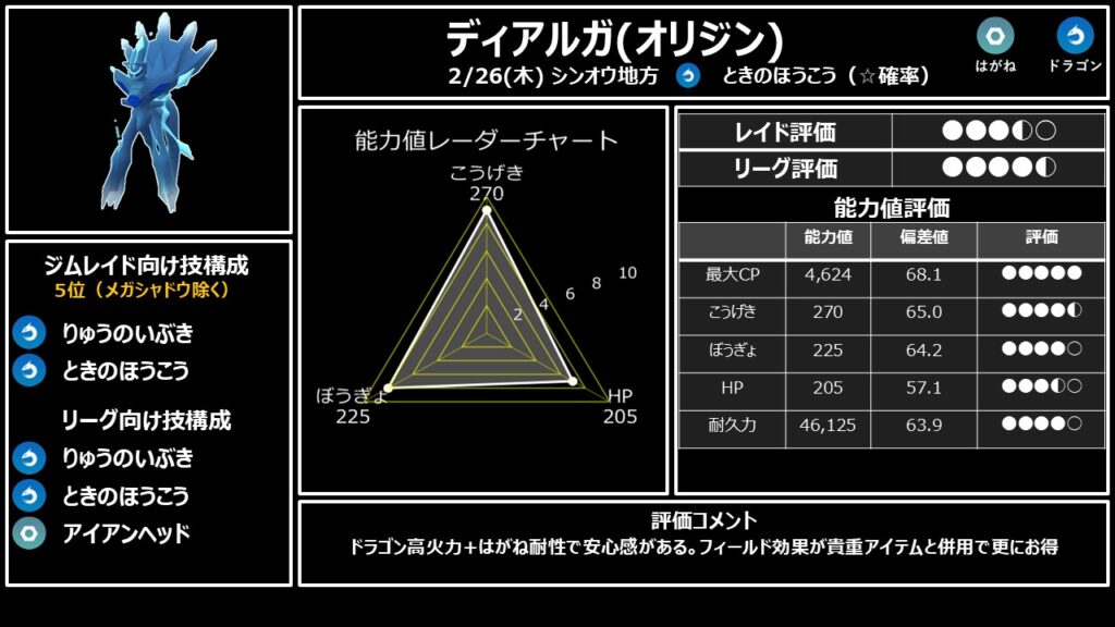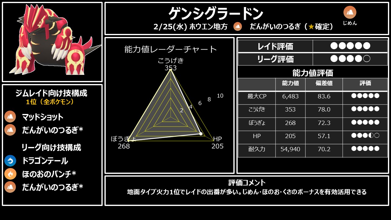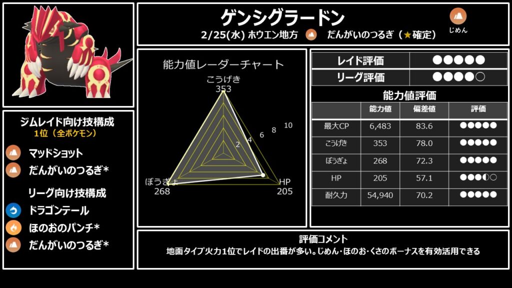 レイド最強・ゲンシブースト最強・アメボーナス汎用性最強。全てにおいてトップのポケモンです。