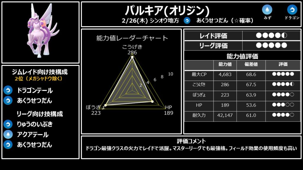 4位: オリジンパルキア ★★★★★|マスターリーグ最強の一角