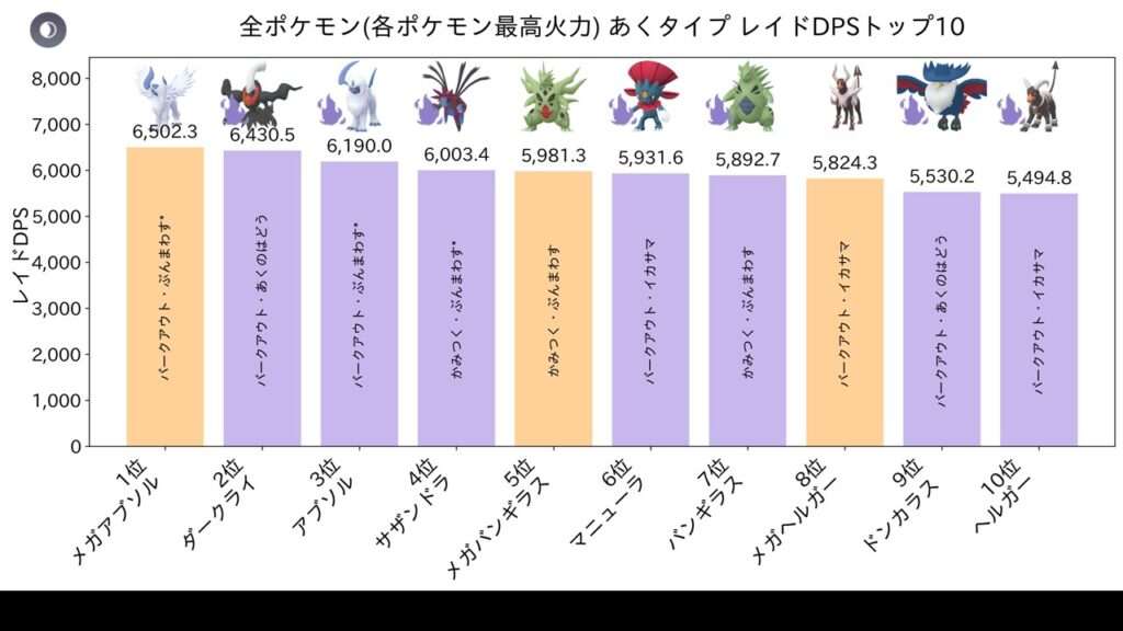 全あくタイプ5位: かみつく / ぶんまわす