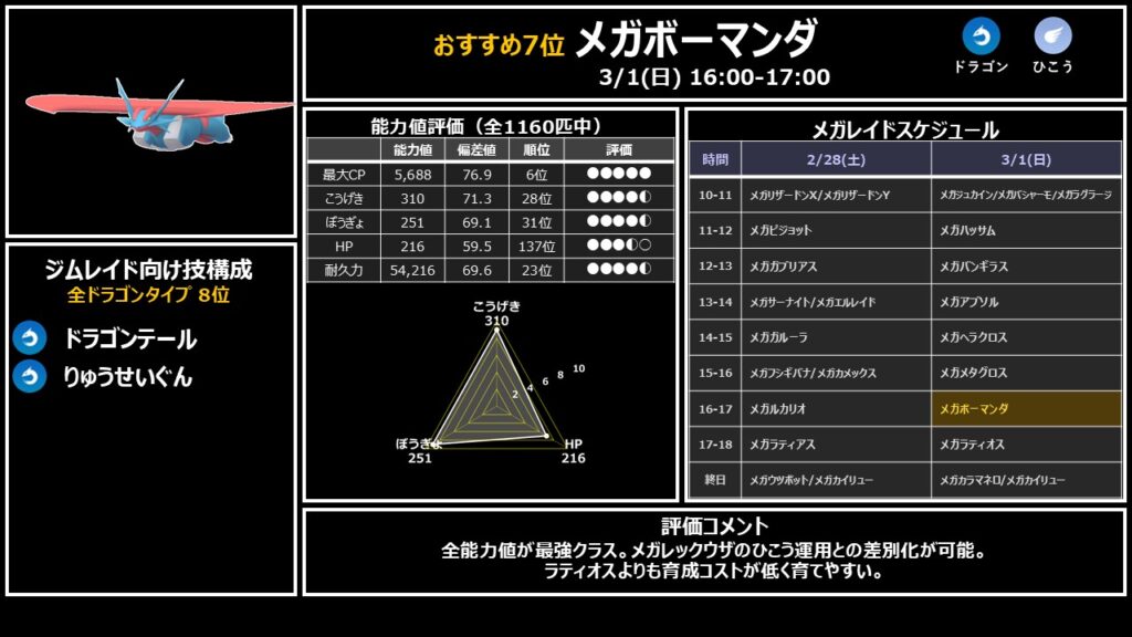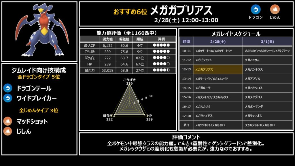 レイドバトルでの火力を基準に、今回出現するメガシンカポケモンを独自にランキングしました。