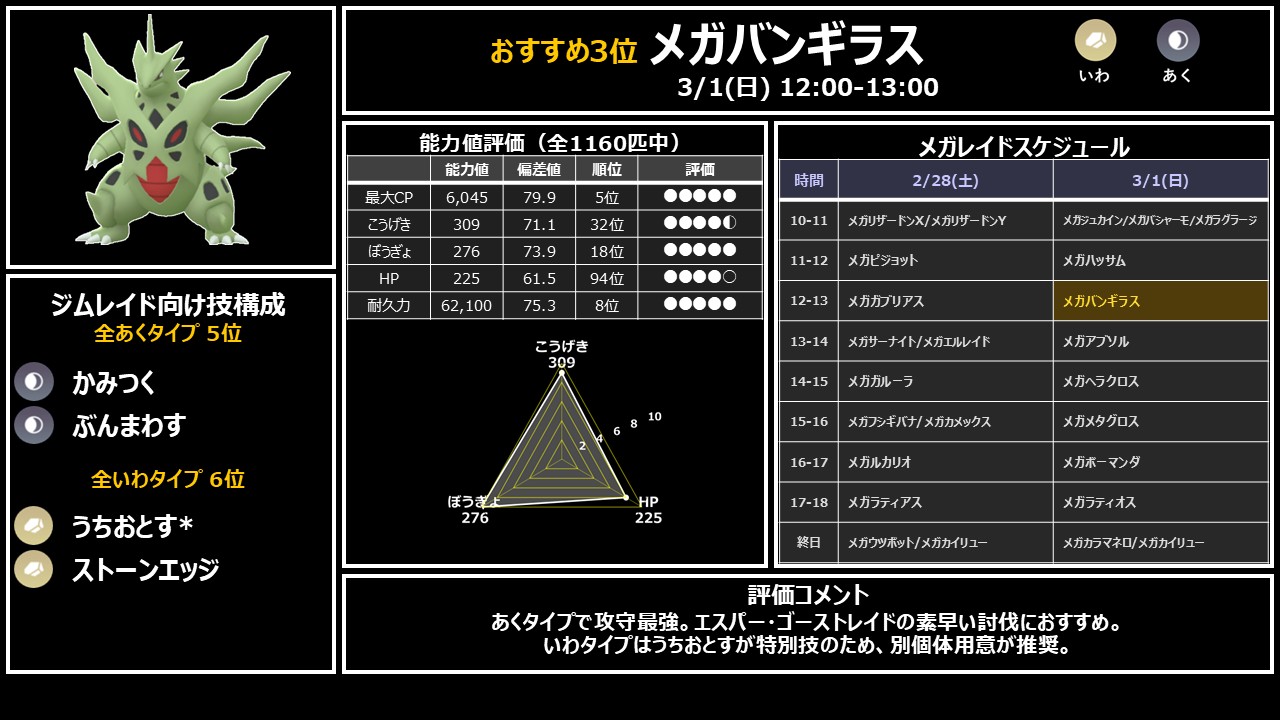 優先 12時: メガバンギラス → あく攻守最強・超高耐久