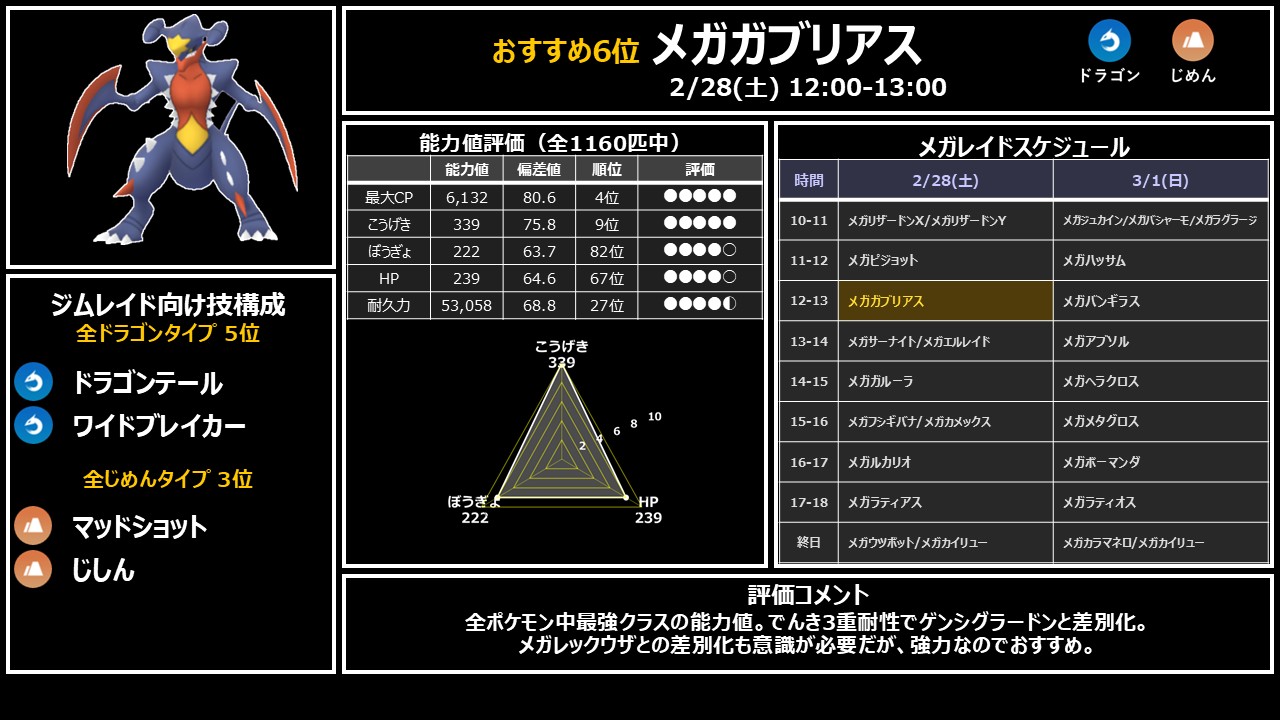 推奨 12時: メガガブリアス → ATK339の最強クラス能力値