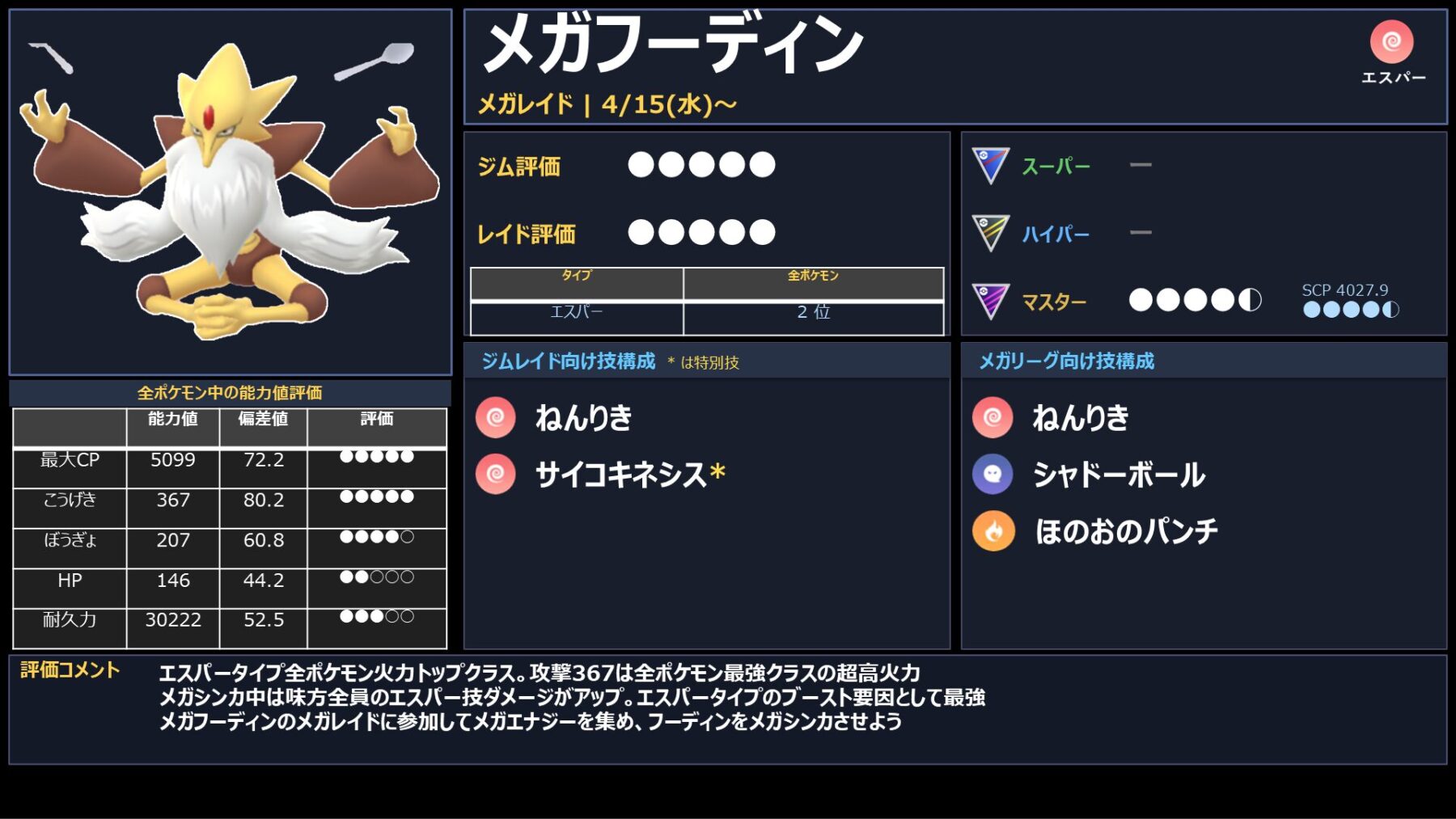- 第4位:メガフーディン→ エスパー最強クラス・4/15からメガレイド