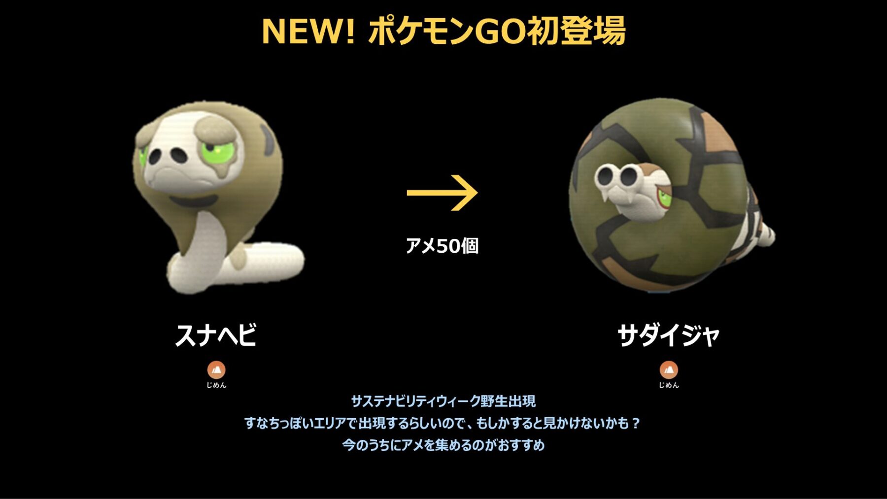 今週のサステナビリティウィークでスナヘビとサダイジャがポケモンGOに初登場します。